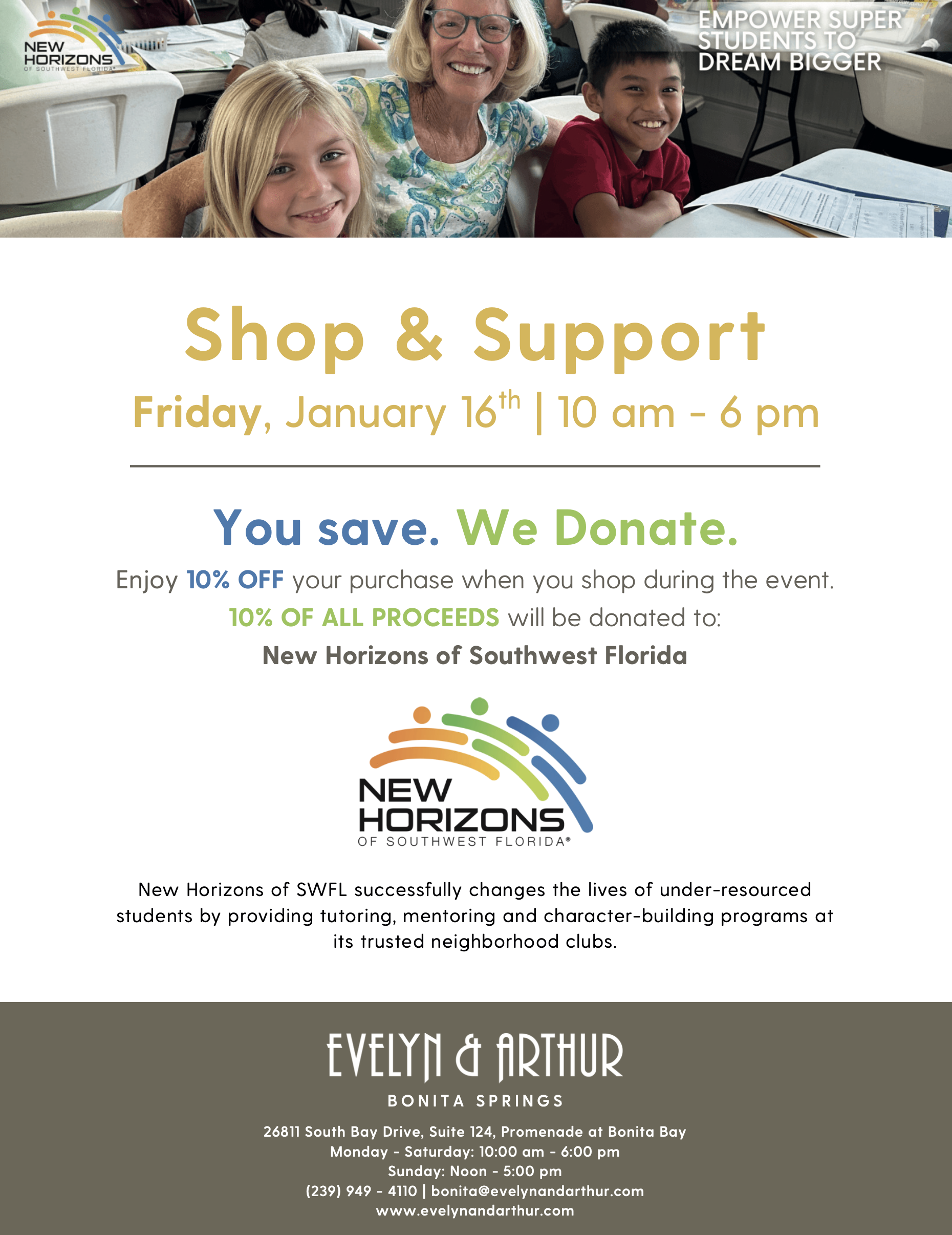 Join us at local stores to shop and support New Horizons students in your community.